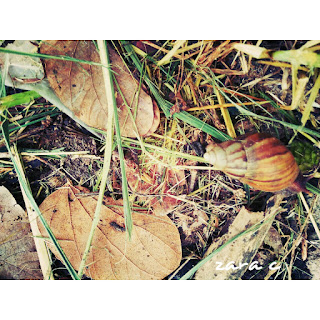 I was surprised that there was a snail on that grass near our